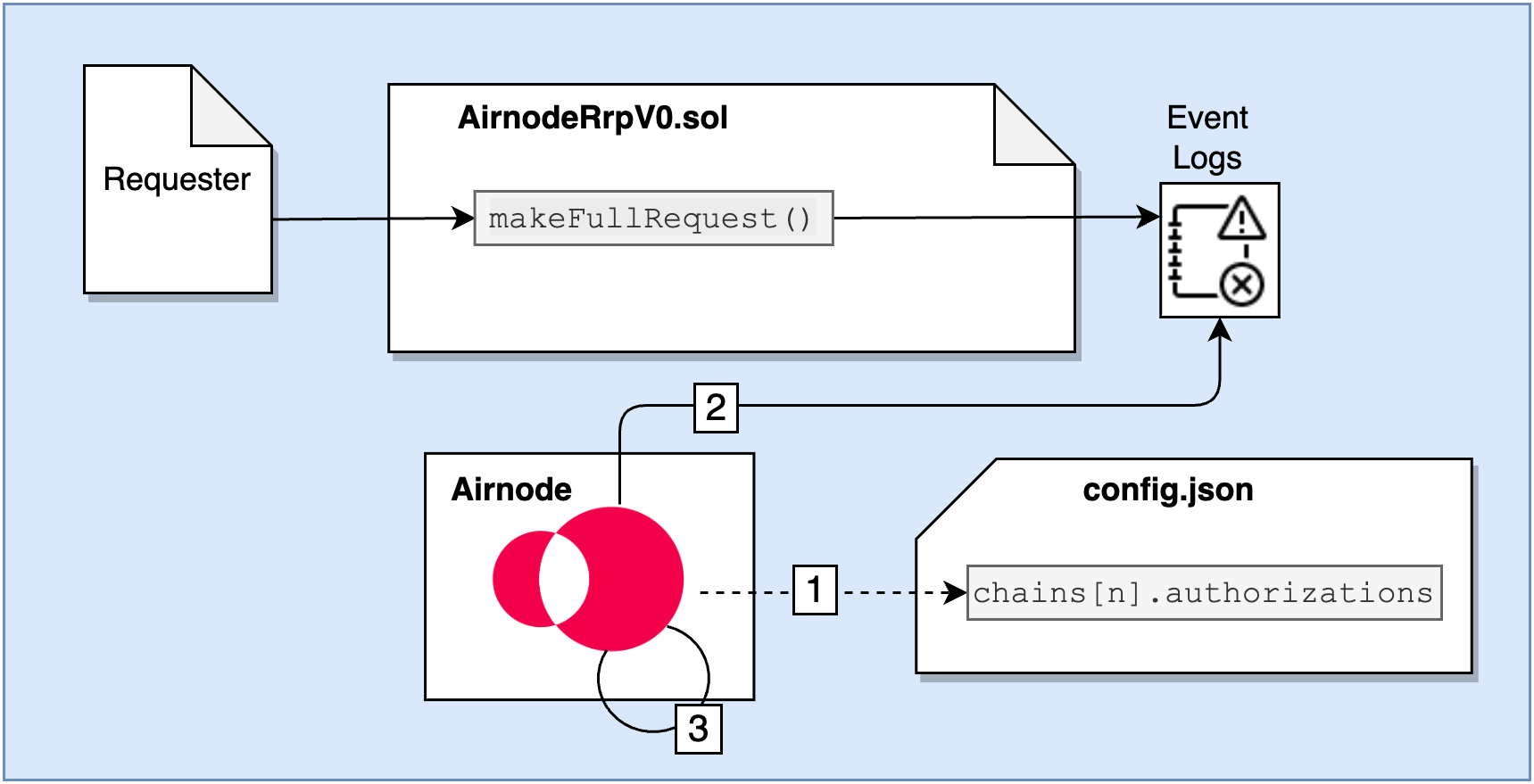 config.json.Airnode validates each request, checking that the requested endpoint and address of the requester is in fact in authorizations as a valid endpointId/address pair. For requests that are validated, Airnode proceeds to fulfill the request.