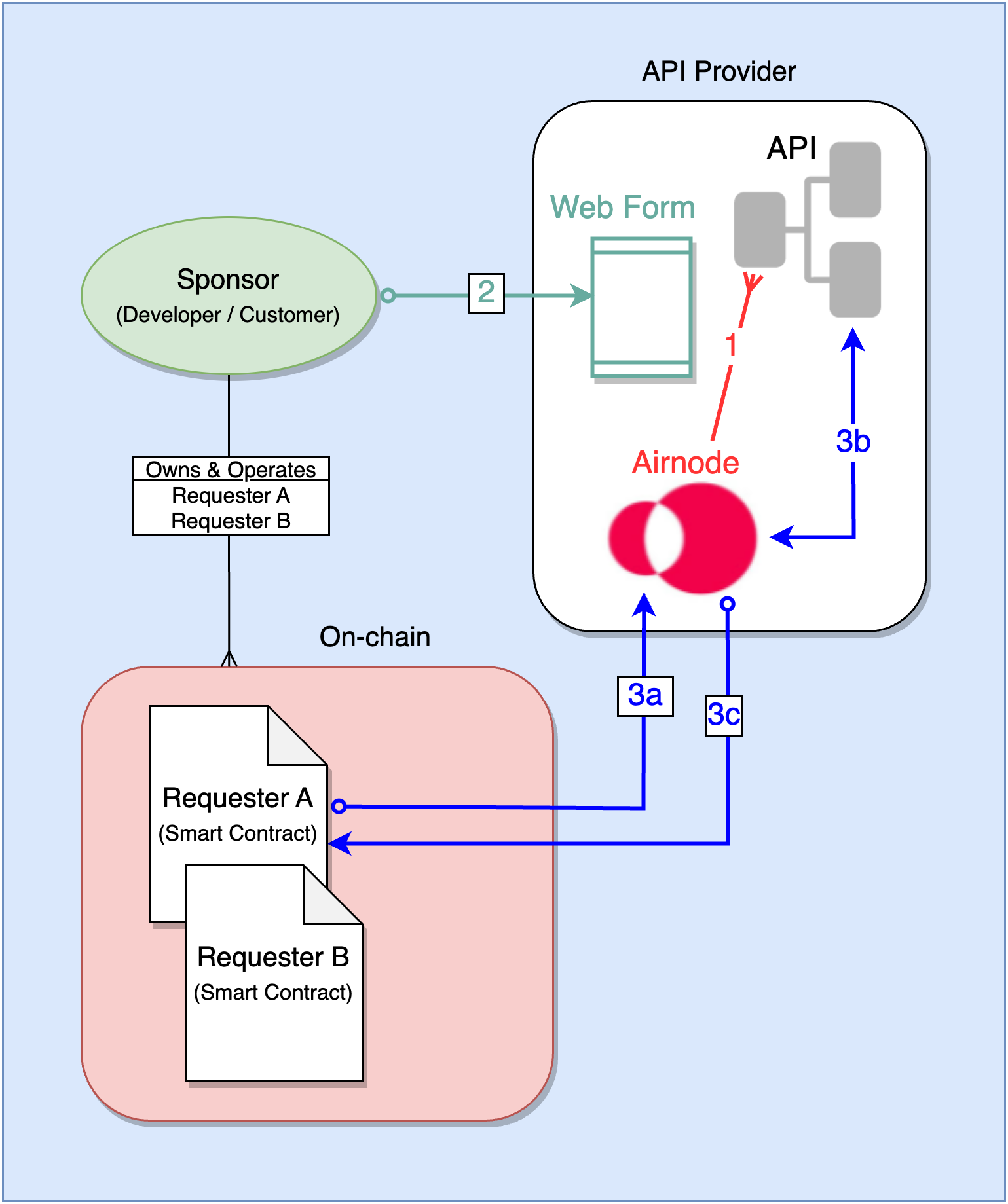 - 3a: The requester makes a request to Airnode.